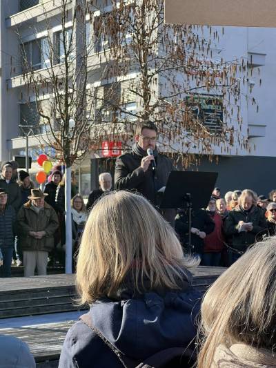 Hechingen schweigt nicht - für Demokratie und gegen Extremismus. Bis zu 800 Menschen waren am 27.1.2024 auf dem Obertorplatz um uns bei unserer Aktion zu unterstützen.