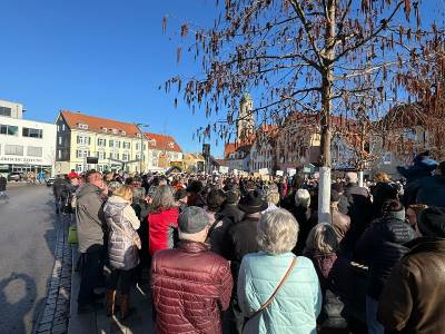 Hechingen schweigt nicht - für Demokratie und gegen Extremismus. Bis zu 800 Menschen waren am 27.1.2024 auf dem Obertorplatz um uns bei unserer Aktion zu unterstützen.
