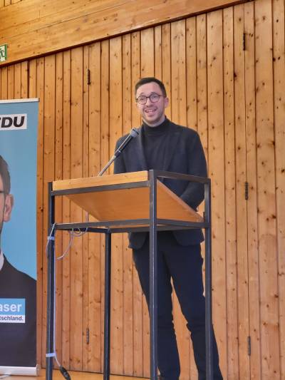 Vortragsveranstaltung mit Prof. Dr. Schlegel in Hechingen. Der Präsident des Bundessozialgerichts a.D. sprach zu folgenden Thema: ?Zeitenwende ? Wie kommt Deutschland wieder auf einen grünen Zweig? ? Umsteuern fängt im Kleinen, bei jedem Einzelnen an!?
